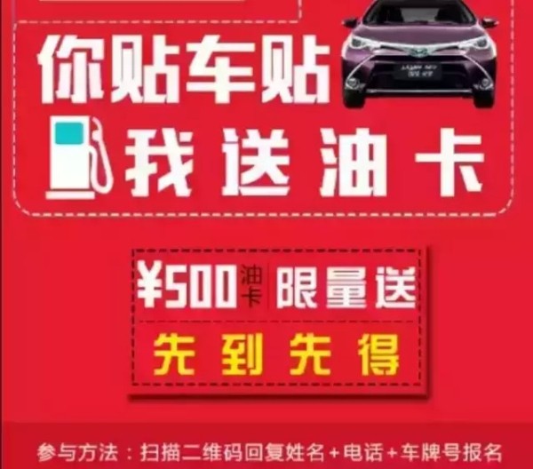 郑州富达花园路店助力雷凌双擎,更环保,更省油,即日起开展“你贴车贴,我送油卡”的活动,凡雷凌私家车张贴专属雷凌车贴,2个月后即可轻松领取由我店提供的价值500元的油卡一张,让你在混动的基础上更省,还在犹豫什么?此次活动名额有限,先到先得哦。