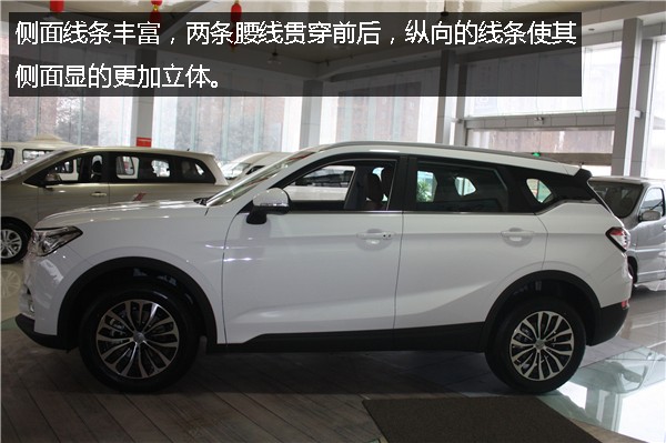 车身侧面,新车采用了双腰线设计,其中一条腰线从前轮凸起的轮拱贯穿至后侧尾灯组,使该车看上去更加运动。而车门下方的内凹线条搭配花瓣式的运动轮圈,为新车增添了极强的运动感。直瀑式的进气格栅都让V6给人一种饱满、健硕的体格感,镀铬装饰及多棱角的线条设计,V6的整体感更富有时尚感及品质感。