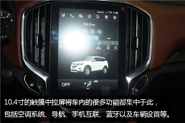 中华V6的整个内饰设计以简洁为主,10.4寸的触摸屏成为了内饰焦点,这也是当下诸多主打智联车型都喜欢采用的设计。中控台大量采用了皮质包裹来提升质感。