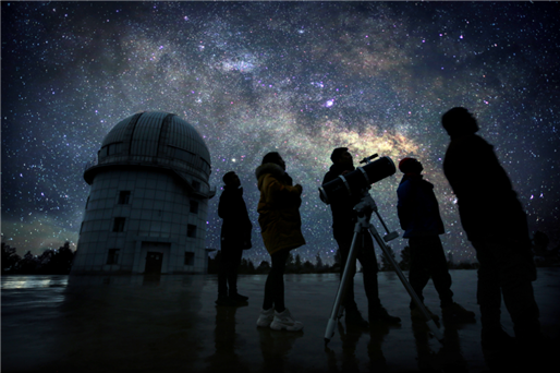 (图为:人们在中国科学院云南天文台丽江观测站仰望星空)