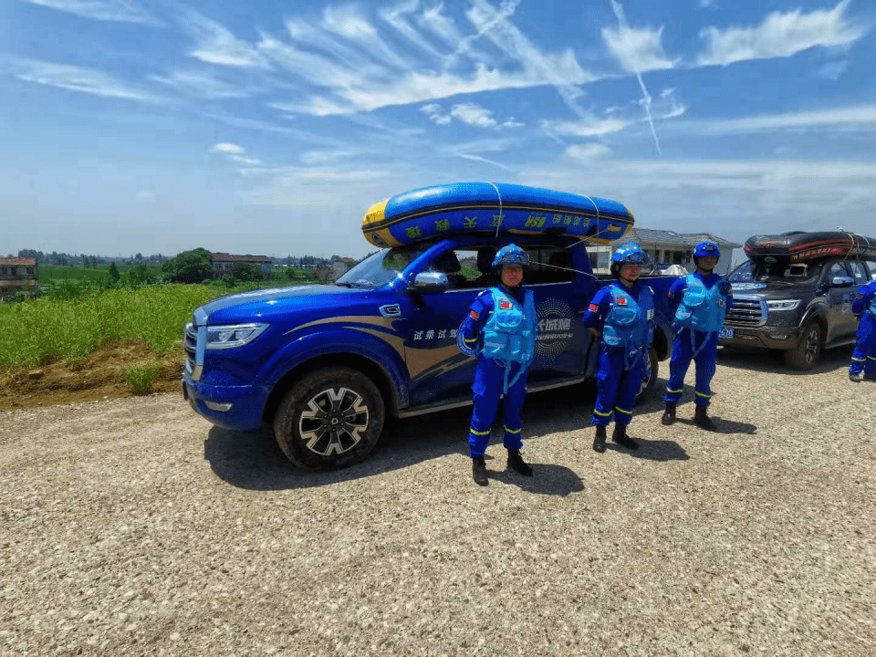 其实,长城炮蓝天救援机动队在去年刚成立不久就迎来首次任务。去年7月份,受持续强降雨影响,安徽庐江防汛压力陡增,险情不断增加,长城炮蓝天救援机动队立即奔赴一线支援抢险。长城炮沿河道逐一排查险情,地毯式搜索每一处民居,确保不让一名群众涉险。同时,得益于长城炮的强大涉水能力,队员们将皮划艇装车固定在车顶并前往一线,深入积水中排除险情、解救被困群众和故障车辆。此外,队员们驾驶长城炮多次往返一线,运送食品、雨具等生活物资以及船艇、发电机组等救灾物资,解决受灾群众的燃眉之急。