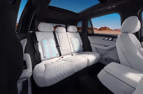 2026款领克09围绕大五座空间舒适体验进阶升级,将前后排舒适配置拉满,优化空间布局的灵活度,打造越级豪华私享行政二排。新车拥有同级超宽二排大沙发(1366mm)和同级最大坐垫深度(540mm),提供符合人体工程学的腿部承托,区别于同级合资车选择牺牲坐垫深度扩容腿部空间;二排最大腿部空间达1130mm,三人满坐仍能肆意舒展。