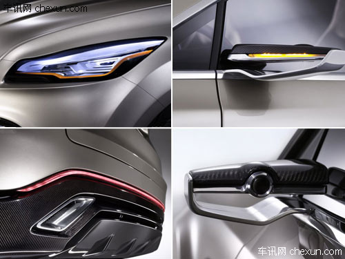 外观上,福特Vertrek由于还处于概念车阶段,给人的整体感觉是更加面向未来。整体圆润的车身线条,在机盖以及侧身几条犀利的直线条勾勒下肌肉感十足。前进气格栅被整体式保险杠一分为四。与大部分车型不同,Vertrek上半部分的格栅反而狭窄了很多,这倒是与两侧细长而犀利的LED大灯相互呼应。雾灯似乎也同样使用了LED光源,在它的映衬下,前格栅的电镀装饰条格外的有质感。
