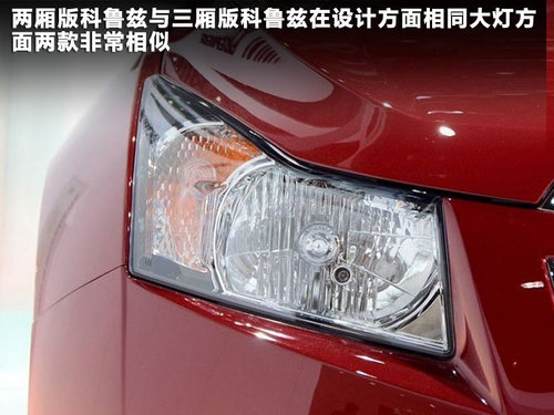 两厢版科鲁兹与三厢版科鲁兹在设计方面大致相同,在大灯方面两款非常相似。全新两厢版并没有使用氙气大灯,这一点有些令人失望。但是卤素大灯也可以保证日常行驶的安全,而氙气大灯可以更保证提高行车安全。