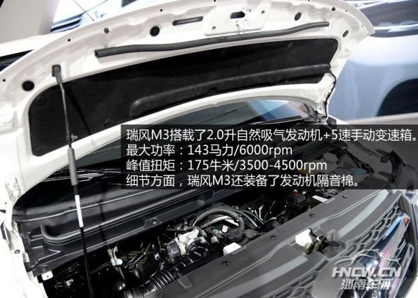 动力方面,瑞风m3将搭载1.6l和2.0l两款发动机,其中以1.6l发动机为主推机型,不过目前官方并未透露相关参数。而另一台2.0l自吸发动机,最大功率为105kw/6000rpm,最大扭矩为175nm/3500-4500rpm,与这两台发动机匹配的均是5速手动变速器。