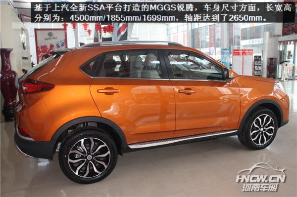 河南车网讯:2015年2月2日,上汽集团正式宣布旗下SUV车型MG GS的中文名为“名爵锐腾”,新车预计将于今年4月正式上市。这是上汽乘用车旗下车型首次采用中文命名的SUV车型,开启了SUV车型全新世界。河南车网编辑在第一时间赶赴河南瑞爵汽车销售服务有限公司,现场实拍了这款卓尔不凡的SUV车型。