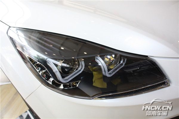 本次实拍车型是2.0T运动版,配备氙气大灯以及弯道辅助照明功能。与其它款式配备的卤素大灯相比,这款车就显得大方许多。