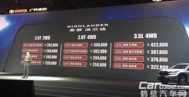 | 广汽丰田全新汉兰达 指导售价 | ||