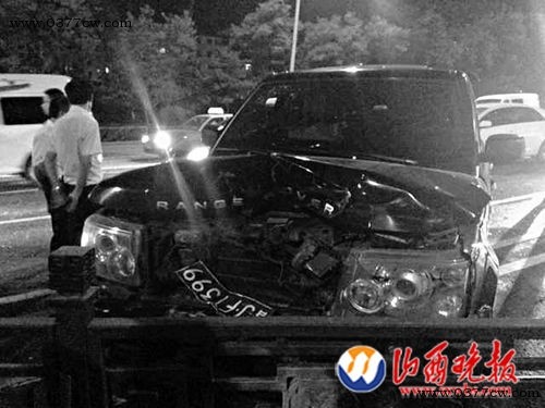 | 路虎车的车头被撞得面目全非 |