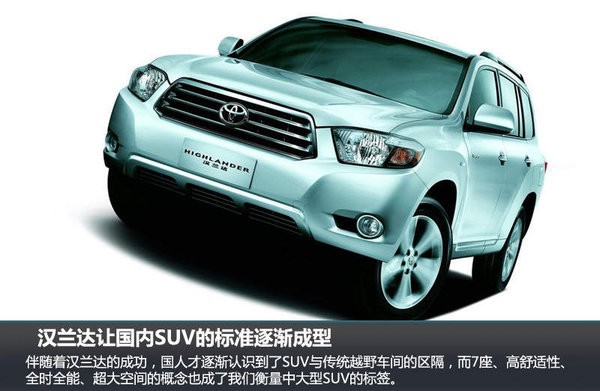 说到这里,我们忽然发现市场变化其实为汉兰达在中国的销量增长带来了一个难得的契机。一款车型可以满足你对传统SUV、轿车、MPV车型的全部需求,而且每一排乘客都可以坐的舒服。这对于那些急于通过购买新车提升生活质量、解决多种需求的人们,汉兰达一定是优选的对象。我需要强调的是,契合度并不是什么巧合或者先知的神功,这都是企业高层经验积累的体现,显然中日双方在汉兰达的策略上达成了促成市场成功的有效默契。