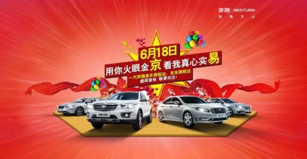 河南车网讯:2015年6月18日,一汽奔腾开启互联网模式新篇章!官方旗舰店正式登陆易车网、京东网。尊选阵容,专属钜惠,请用你的火眼金“京”,来看一汽奔腾的真心实“易”!
