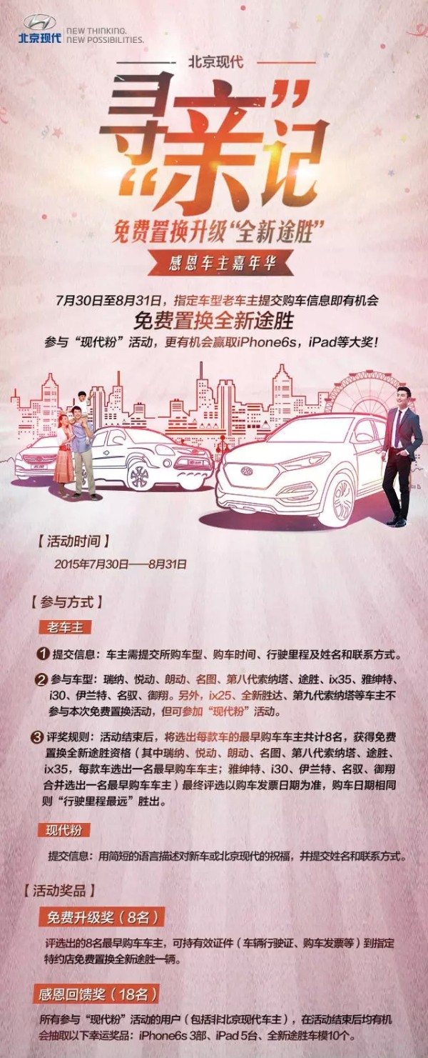 河南车网讯:十年经典,全新升级。2015年7月30日全新途胜正式下线,在此历史性的时刻,北京现代隆重推出了感恩暖心的寻“亲”记活动。