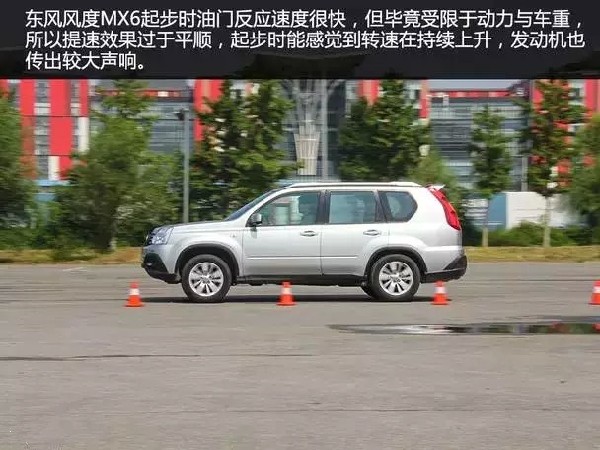 我们这次测试的是搭载CVT(模拟6速)变速箱车型。从加速表现上看,东风风度MX6的油门反应速度很快,但毕竟受限于动力与车重,所以提速效果显得过于平顺。在起步时能感觉到转速在持续上升,发动机也传出较大声响,但动力算不上强劲。最终,东风风度MX6的0-100km/h的加速时间为:11.66秒。