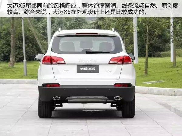 之前已经了解过大迈X5,不过在见到实车时仍然眼前一亮,无论是车身前脸还是尾部,你都不会发现明显的模仿痕迹。大迈X5外形具有较高的原创指数,而且这种原创个人认为比较成功。