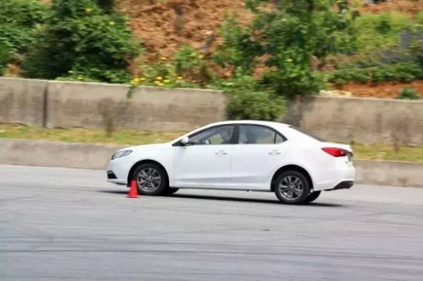 由于荣威360有着很好的视野,这个优势在绕桩中可以更近地贴近桩桶,让绕桩路线更加平滑,同时也最大程度减少了左右打方向的量,能够更快地经过桩桶。经过体验感受到底盘的支撑力度挺好,车尾的摆动能够保持在可控范围内。只是打方向盘的速度反应在地盘上,略有点拖泥带水,需要适应一下以便找到绕桩的节奏。以8-13万预售价来看,这个性能在这个价位已经算很好的了。