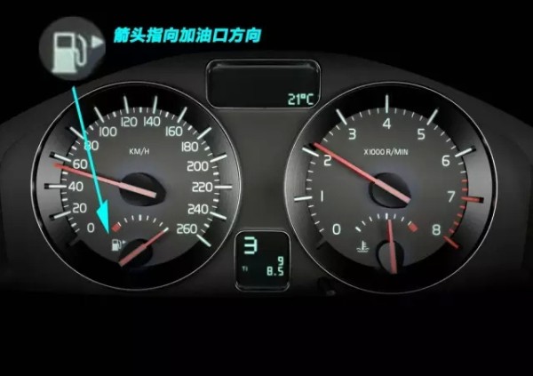 大部分厂家都会在仪表面板的油量表处有一个小箭头进行提示,油枪标识旁边的箭头指向哪,加油口就在哪个位置上,我们可以通过这个标识来了解加油口的具体位置。
