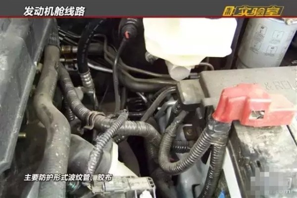 驭胜S350采用了风帆品牌12V 80Ah的免维护蓄电池,发动机舱线路走向合理,主要防护形式为波纹管,即便是分支线束,防护包裹都同样到位。
