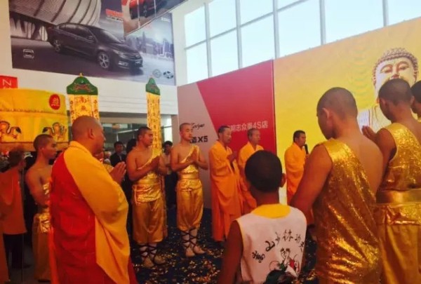 发布会现场还盛情邀请了少林寺释永信方丈的师弟释永柒高僧现场为百台大迈X5车辆祈福开光活动。