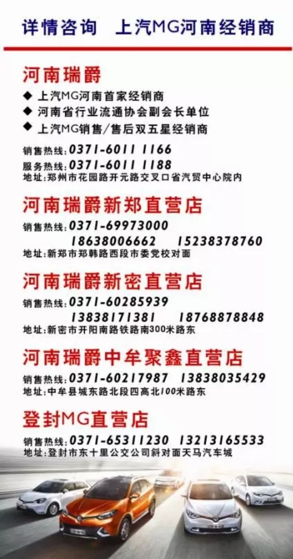报名地点: MG 河南瑞爵4S店(郑州市花园北路与开元路交叉口省汽贸中心院内)