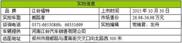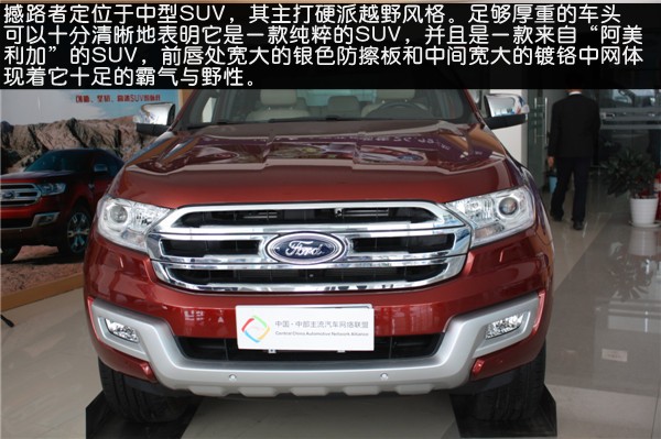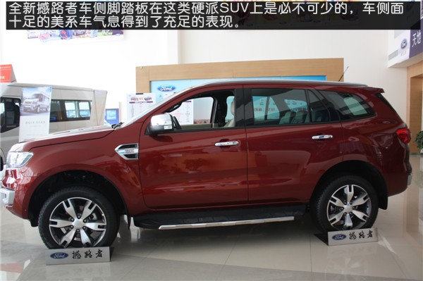 【河南车网消息】2015年10月30日晚,国产福特撼路者正式登陆国内市场,该车的预售价区间为26.98-36.98万元。此外,福特撼路者2.2L柴油版车型同一时间亮相。撼路者提供珠光白、熔岩棕、旭日红、银沙黑、极光银、玄武灰六种车身颜色及流沙金、星际黑两种内饰主题,以及旗舰版、豪华版、菁英版三种基础配置共七款车型供用户选择。河南车网编辑在河南江铃汽车销售有限公司实拍到了福特撼路者的旭日红车型,下面就分享给大家。