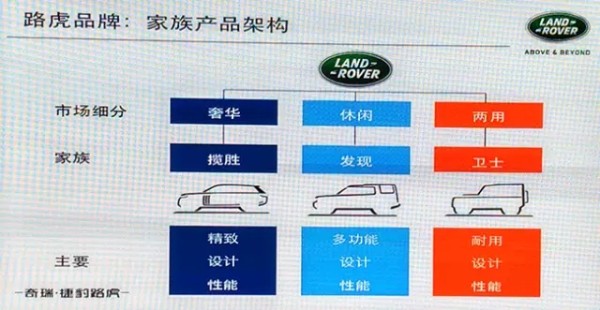 我今天试驾的是继极光之后,奇瑞路虎的第二款国产车型-路虎发现神行,起步价36.8万元,定位高于极光。那么问题来了,路虎发现神行到底是何物?是发现还是神行?因为我们知道路虎旗下有揽胜、发现、神行者和卫士这四个车系,那么发现神行怎么理解?OK,上面一张图就能道出疑惑。所以,之前的神行者系列不再单独存在,而是并入了发现家族,这也就有了发现神行。发现神行的英文标示是DISCOVERY-SPORT(直译为发现运动版),但官方还是叫路虎发现神行,没辙!
