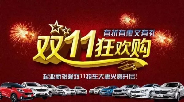 河南车网讯:11月11日,传说中的双11,至起亚新裕隆展厅购车、保险优惠齐发,双11疯狂来袭,有折又有惠,礼享全城!!