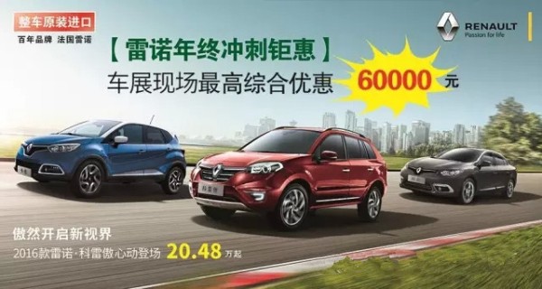 雷诺年终冲刺钜惠 11月21日--22日福塔车展最高综合优惠6万元