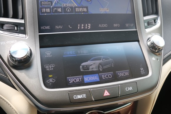 皇冠2.0T提供了四种不同的驾驶模式:普通、运动、经济和雪地模式。在不同模式下,方向盘助力、油门刹车踏板、变速器的调校都会发生改变,以满足不同的驾驶需求,各个模式可以在皇冠的5英寸显示屏上进行切换。
