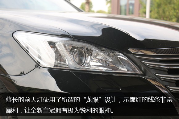 狭长的前大灯使用了所谓的“龙眼”设计,示廓灯的线条非常犀利,让全新皇冠拥有极为锐利的眼神。灯源方面,采用远近光一体化的LED大灯,并带有透镜设计。