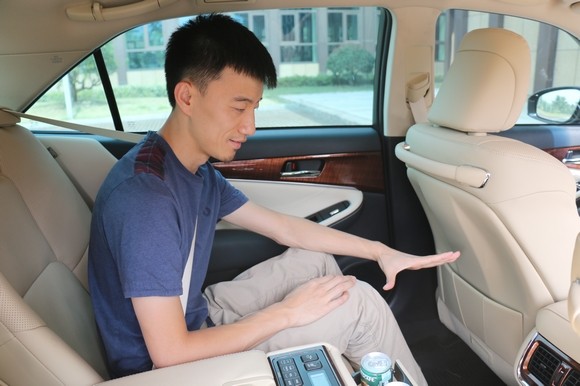 体验者进行乘坐体验,2925mm的轴距为前后排都带来了宽敞的空间,尤其是后排腿部空间,翘个二郎腿啥的绝对没问题。