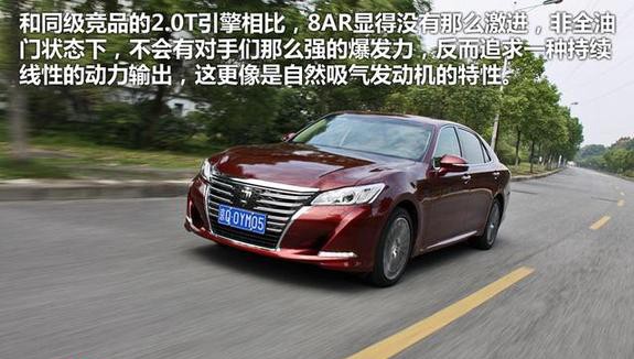 通过一天的试驾,这款8AR引擎给我带来了一些新鲜感,为什么这么说呢,我想可以通过两个方面来谈谈感受。首先便是和同级竞品的2.0T引擎相比,8AR显得没有那么激进,非全油门状态下,不会有对手们那么强的爆发力,反而追求一种持续线性的动力输出,这更像是自然吸气发动机的特性;至于好坏,我无从评价,看个人喜好而已,如果是运动趋向的车型,此种表现会显得有些不够暴躁畅快,但就搭配皇冠这种行政级车型的角度来说,我认为8AR显然能够提供更好的驾驶舒适性。而且在噪音、震动方面的优化非常不错,相比对手的2.0T引擎,能够明显感觉到更加精良。