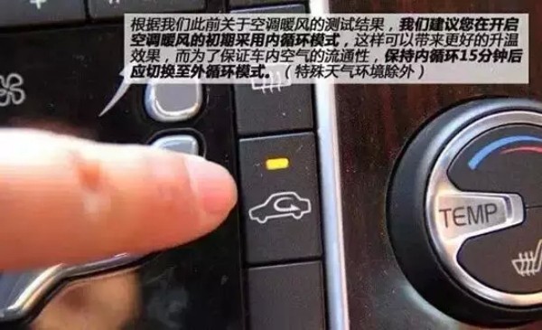 ④不要开启空调(不要开启AC开关),暖风是利用汽车自身的热循环,省油!