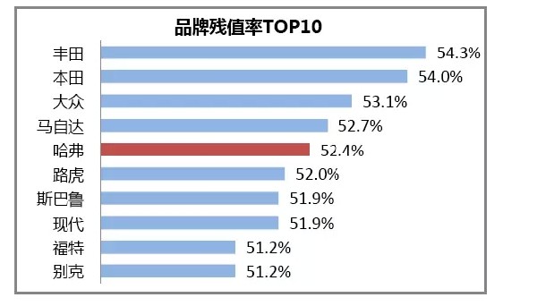 品牌残值率排名TOP10 哈弗成为唯一本土品牌