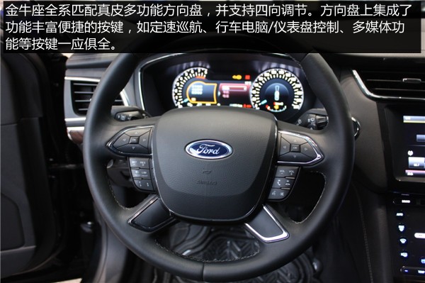 金牛座全系匹配真皮多功能方向盘,并支持四向调节。方向盘上集成了功能丰富便捷的按键,如定速巡航、行车电脑/仪表盘控制、多媒体功能等按键一应俱全,设计布局简洁,行车过程中能便捷操作。