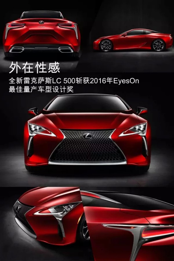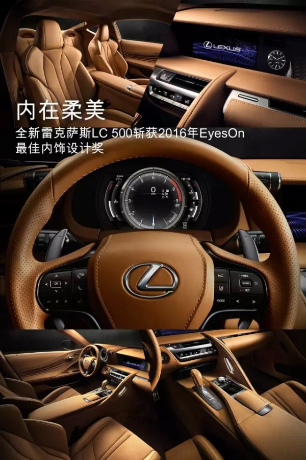 在刚刚结束的北美车展上,全新雷克萨斯LC 500以其凌厉动感的外观设计和细腻优雅的内饰风格斩获2016年EyesOn最佳量产车型设计奖(Design Excellence-Production Car)与最佳内饰设计奖(Design Excellence-Interior Design)。