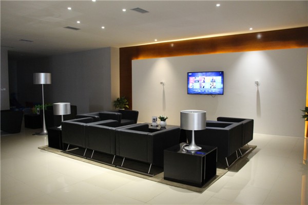 整个客户休息室的风格同样以简洁高雅的设计为主风格,各类装饰和摆设都很"美式",在灯光的点缀下,显得分外典雅。多媒体休息室的配置温馨简练、应有尽有。坐进去就倍感心情舒畅、阳光灿烂。