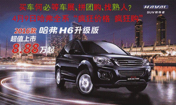 4月9日来参加2016款哈弗H6郑州站上市抢购会就够了