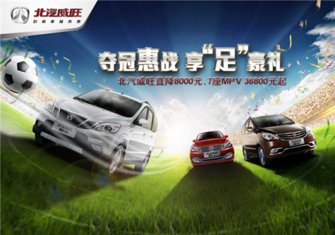 河南车网讯:欧洲杯的战火在这个盛夏再次拉开序幕,借此狂欢之际,北汽威旺将在6-8月,开启名为“夺冠惠战 享足豪礼“的盛夏促销季,为长久以来支持北汽威旺的新老用户,带来M系全系车型直降8000元的超值优惠。优惠力度之大可谓空前,此时若不入手,更待何时?