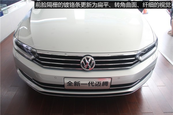 外观设计上,现款迈腾(B7L)到全新迈腾(B8L)的进化涉及到大众对潮流设计语言的抓取,从设计语言上讲是精致化,并且可以看作是用工艺质感展现汽车设计美学的一个实例。前脸隔栅的镀铬条更新为扁平、转角曲面、纤细的视觉,尤其是大面积隔栅镀铬的风潮在这两年达到巅峰后正经历着审美疲劳,全新迈腾的改变正符合这一迫切需要改变的流行趋势。