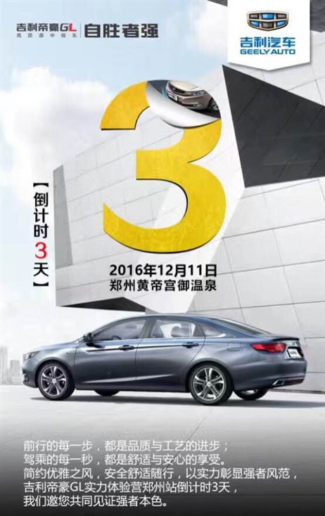 吉利帝豪GL实力体验营—郑州站倒计时3天!