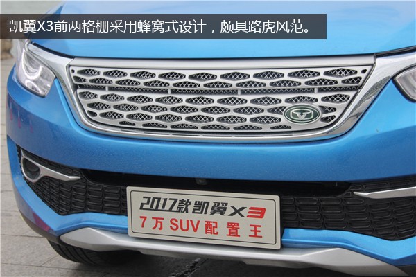 但仔细打量一番,可以看到2017款凯翼X3发烧友版采用了新设计的蜂窝状进气格栅,近距离观察显得特别精致。品牌LOGO也由中间变为了右下方,配以家族式的“鹰翼”前脸,提升了整体车头质感。