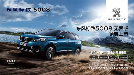 11月1日起,东风标致5008无界版在全国陆续上市,至此,5008在售的7座车型增加到6款,覆盖22-28万价格区间,现有的产品序列更加丰富,为用户提供了更多“品质”选择。年底,更有东风标致全系狂欢惠《“税”末狂欢 蓝色关爱三重礼》奉上,购车养车一站式服务,贴心更省心。