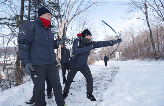 千里冰封挑战体能极限“北国风光,千里冰封,万里雪飘”。冬日里的东北风光固然精彩,但是严寒和颇具挑战性的竞赛任务无不提醒着选手们这是一场探索体能极限的征途。在被白雪覆盖的“滑雪胜地”亚布力,选手们暂时脱离X家族的“庇护”,置身于冰天雪地之中,挑战自我。“冰雪穿越”挑战,这是一项既需要团队协作策略又需要充沛体能的竞赛,勇士们需两人一组在规定的90分钟内完成总长4公里的雪山越野。选手们还可根据自己的能力挑选水桶或面包负重装备进行比赛,以此来获取奖励时间,提升团队的成绩。而“冰封对决”这一挑战更是充满了“野外生存”的味道,带给多数人不曾拥有的体验。作为2017 BMW X之旅北区挑战赛中特别设置的“冷兵器”相关的竞赛项目,平日里生活在“和平世界”的选手们要在规定时间内完成从原始弓箭的制作到不同距离目标的射击得分。而在射击过程中更需要挑战者发挥出“精、准、狠”,稍有不慎,就有失分的可能,挑战无时不在。
