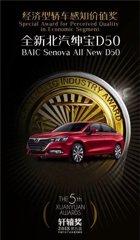 全新绅宝D50荣获第五届轩辕奖经济型轿车感知价值奖