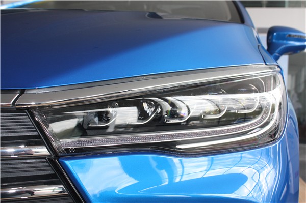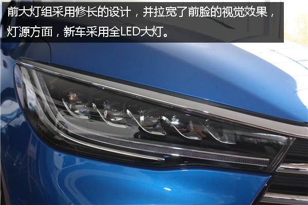 该车的前脸设计采用家族式设计语言,进气格栅采用大尺寸镀铬横辐设计连接两侧尾灯,采用非常时尚的开眼角设计,前脸整体时尚大气,大灯内部采用了矩阵式的灯组光源,新车的前保险杠两侧还有仿进气口设计。