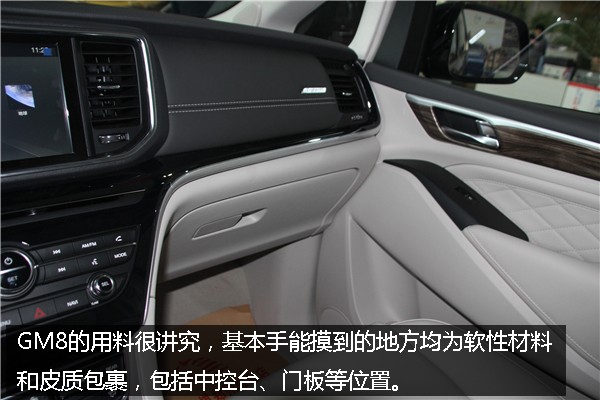 进入车内,第二排两个独立的航空座椅是GM8主打中高端MPV市场最明显的表现,支持前后滑动并配有电动腿托、第二排大尺寸天窗、三区独立空调以及可折叠式杯架、储物格等,配置水平表现丰富。此外,环抱式的座舱布局,通过横向贯穿的中控台造型营造出车内宽敞舒适的视觉效果。