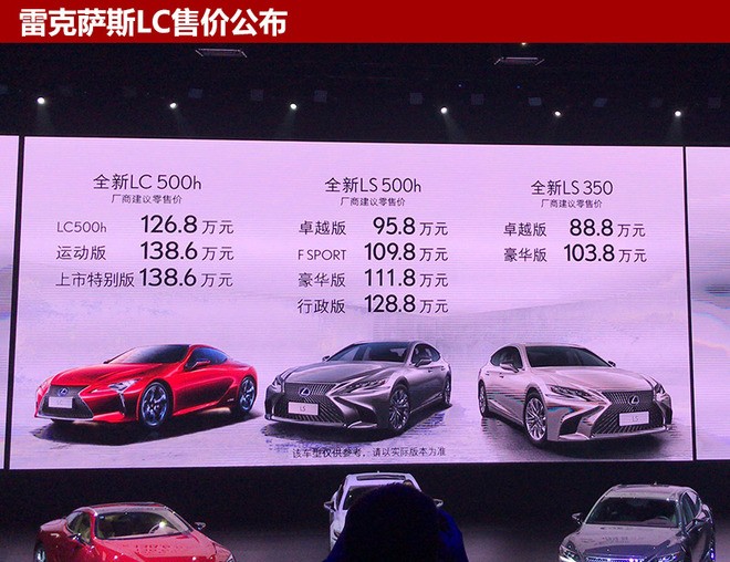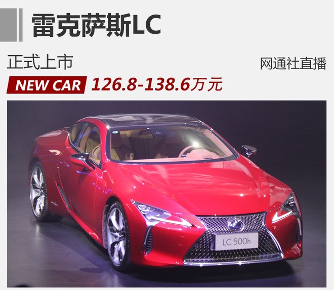 LC是基于雷克萨斯GA-L后驱平台打造的全新跑车,也是未来前置后驱车型的架构蓝本。LC系列定位偏向于GT跑车,在拥有高性能、出色驾控表现的同时,提供豪华与舒适性。网通社从雷克萨斯官方获悉,全新LC跑车正式上市,共推出3款车型,售价区间为126.8-138.6万元。