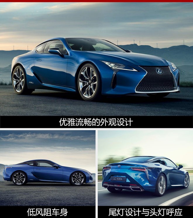 雷克萨斯全新LC系列跑车外观采用最新的设计理念,低矮的车身更多的考虑空气动力学表现,而接近车身四角的车轮,则为车辆的行驶性能做出更多贡献,简约舒展的车身比例看起来也更为动感。凌厉的头灯组与尾灯设计,大幅提升了雷克萨斯LC系列跑车的辨识度。此外,全新的后驱平台还为高性能运动悬挂、底盘和动力系统留出了充裕空间。