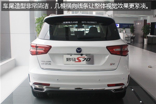 1月17日上市的君马S70定位于一款中型SUV,共推出了13款车型,售价区间为8.19-11.59万元。河南车网在郑州市锐久汽车销售服务有限公司对君马S70进行了详细实拍,下面我们一起来看一看。