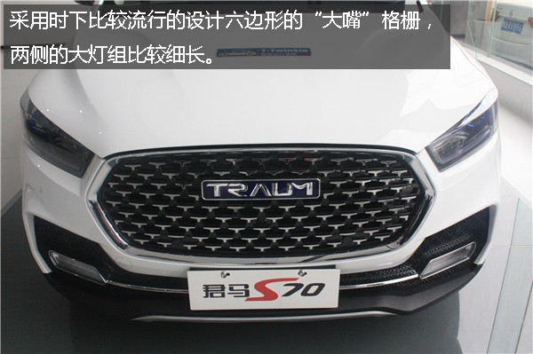 君马S70整体造型比较年轻化,前脸有两种样式风格,一种是采用了T字标的大嘴式格栅,另一种则是竖条纹的,两种不同风格的前脸给消费者多种的选择。